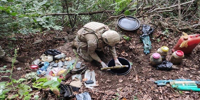 Arazideki 2 depo içerisinde PKM makineli tüfek, 10 el bombası, 12 roket mühimmatı, 3 bin 920 çeşitli çaplarda fişek, 28 piyade tüfeği şarjörü, 7 EYP düzeneği, 129 fünye, 8 el telsizi, 4 el telsizi anteni ile 100 metre saniyeli fitil ele geçirilerek imha edildi.