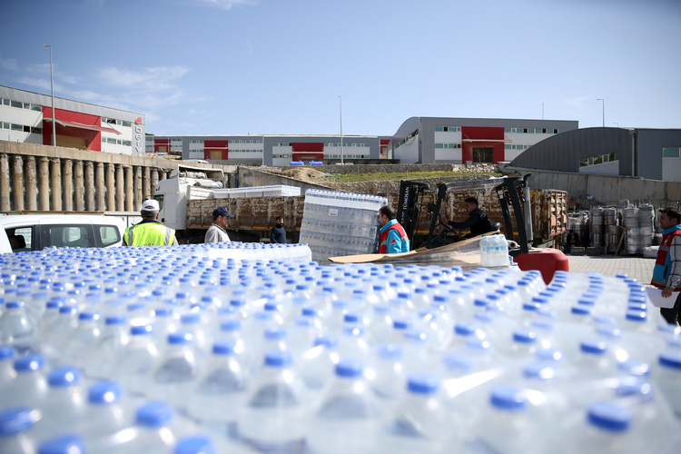 Bölgeye sevk edilen su, gıda, giyecek, hijyen ürünü gibi birçok farklı kategorideki yardım, merkezden ekipler aracılığıyla depremzedelere ulaştırılıyor.