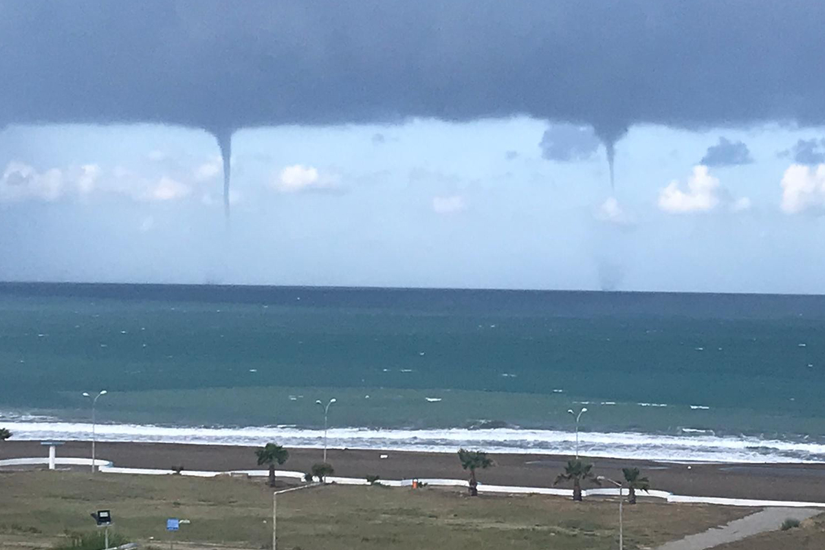 Hatay'ın Arsuz ilçesinde denizde aynı anda 3 hortum oluştu.