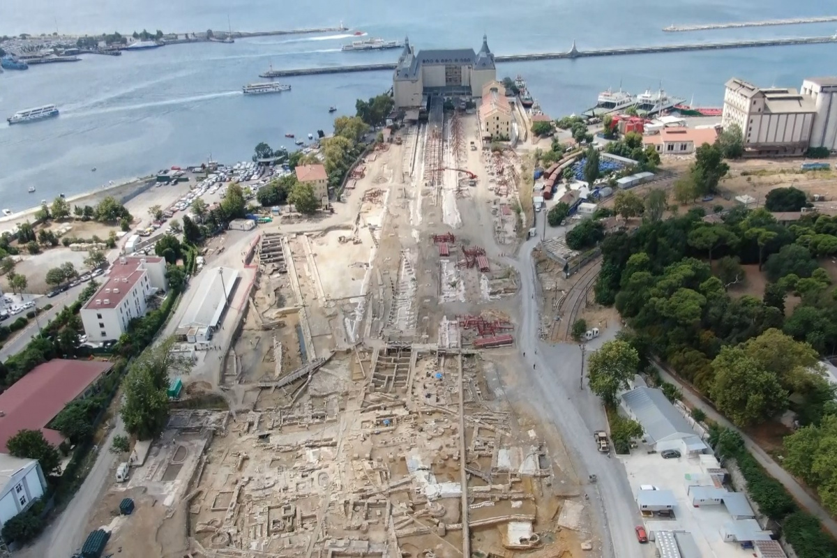 Haydarpaşa Garı ve çevresinde yapılan arkeolojik kazı çalışmalarında gelinen son durum drone ile havadan görüntülendi.