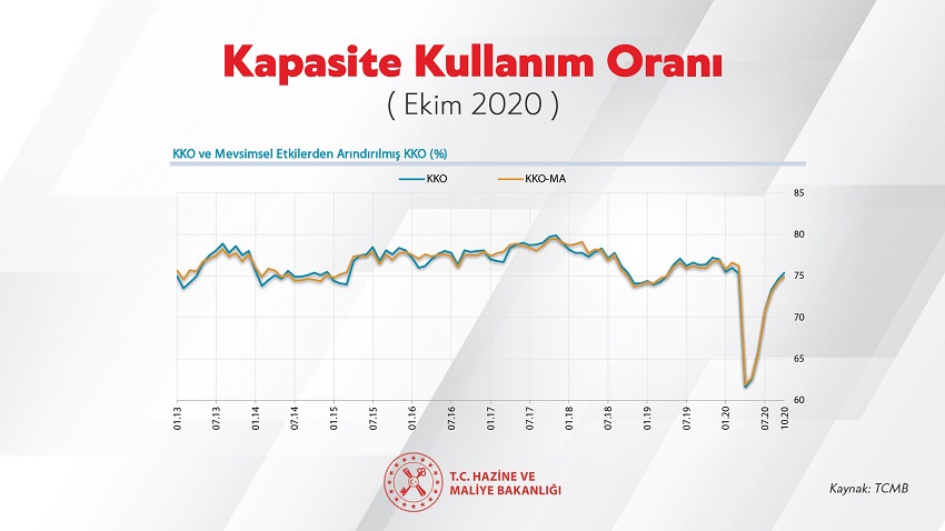 Albayrak, "Kapasite Kullanım Oranı ise %74,6'dan %74,9'a yükseldi." dedi.