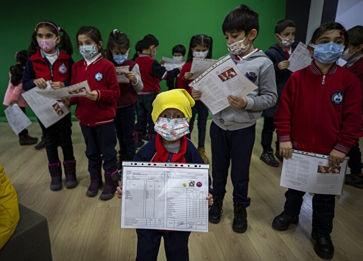 Yarıyıl tatili öncesi sınıf arkadaşlarıyla karne almanın mutluluğunu yaşayan Veysel'e okulda her gün annesi Arife Çözvelioğlu da eşlik ediyor.