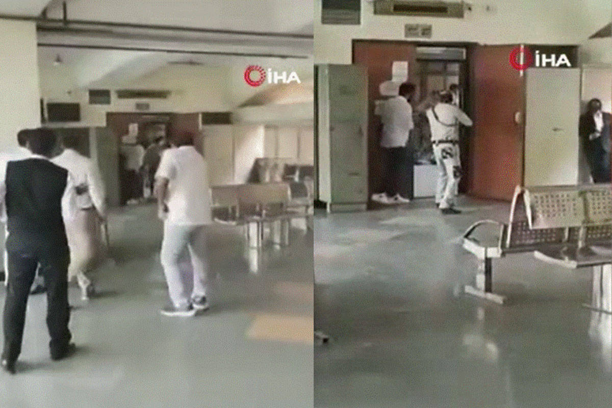 Hindistan medyasında yer alan görüntülere göre adliye binasındaki silahlı saldırı paniğe neden olurken, silah sesleri duyuluyor.