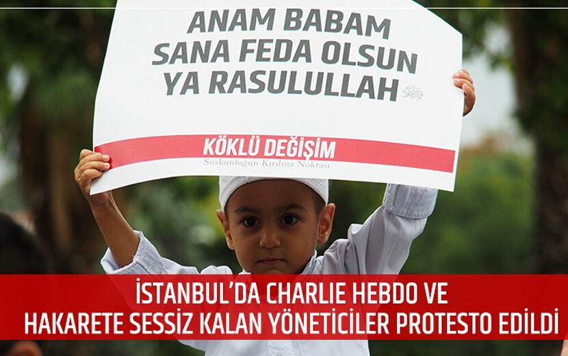 Ardından Köklü Değişim Dergisi yazarlarından Musa Bayoğlu, “Rasulullah’a Hakaret Affedilmez” başlıklı basın açıklamasını okudu.