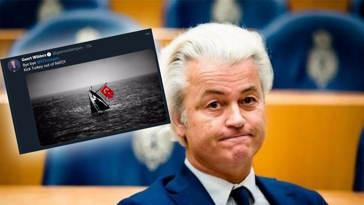 Türkiye'nin düşmanları sosyal medya üzerinden provokasyonlara ve skandal paylaşımlara devam ediyor. Fransa ile yaşanan gerginliğin ardından ortalığı karıştırmak isteyen bazı faşistler soluğu sosyal medya platformu Twitter'da aldı. Faşist oluşu ve ırkçılığıyla; aynı zamanda İslam düşmanlığıyla tanınan Hollanda Özgürlük Partisi Genel Başkanı Geert Wilders, Twitter'dan yaptığı paylaşımla Türkiye'yi hedef aldı. Küstah bir paylaşım yapan Wilders, üzerinde Türk bayrağı yer alan bir teknenin fotoğrafını paylaştı. Fotoğrafta teknenin battığı görüldü.