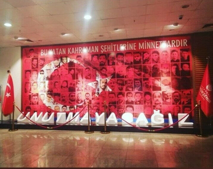 Fetullahçı Terör Örgütü'nün (FETÖ) 15 Temmuz'daki hain darbe girişiminden sonra, İstanbul Büyükşehir Belediyesi'ne (İBB) ait bir yerleşkede, "Bu vatan, kahraman şehitlere minnettar. Unutmayacağız." yazısıyla şehitlerin fotoğraflarının koyulduğu bir köşe yapılmıştı.