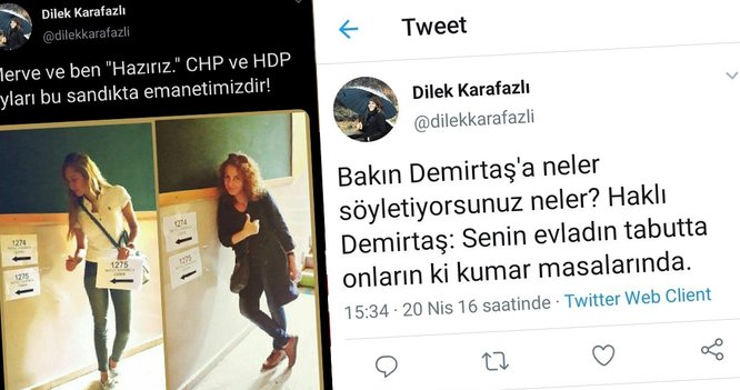 "Bakın Demirtaş'a neler söyletiyorsunuz? Haklı Demirtaş: Senin evladın tabutta onların ki kumar masalarında" yazdı. Öte yandan Selahattin Demirtaş, 2013 yılında İstanbul'da yapılan nevruz kutlamasında yaptığı konuşmada terör örgütü PKK'yı ve elebaşı Abdullah Öcalan'ı övmesiyle Terör örgütü propagandası"