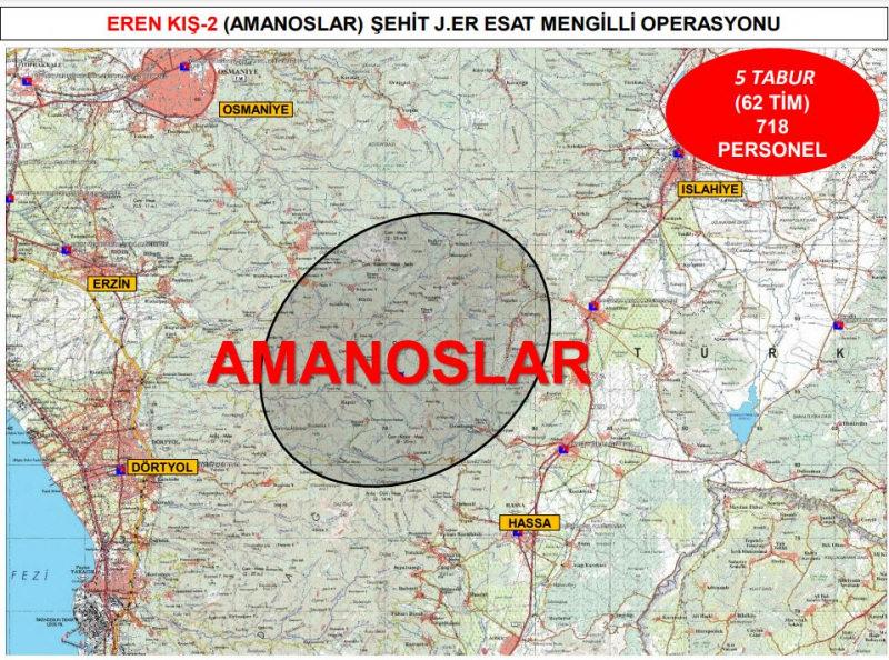 PKK terör örgütünü ülke gündeminden çıkarmak ve bölgede barındığı değerlendirilen teröristleri etkisiz hale getirmek maksadıyla Hatay'da “Eren Kış-2 Amanoslar Şehit Jandarma Er Esat Mengilli Operasyonu" başlatıldı.