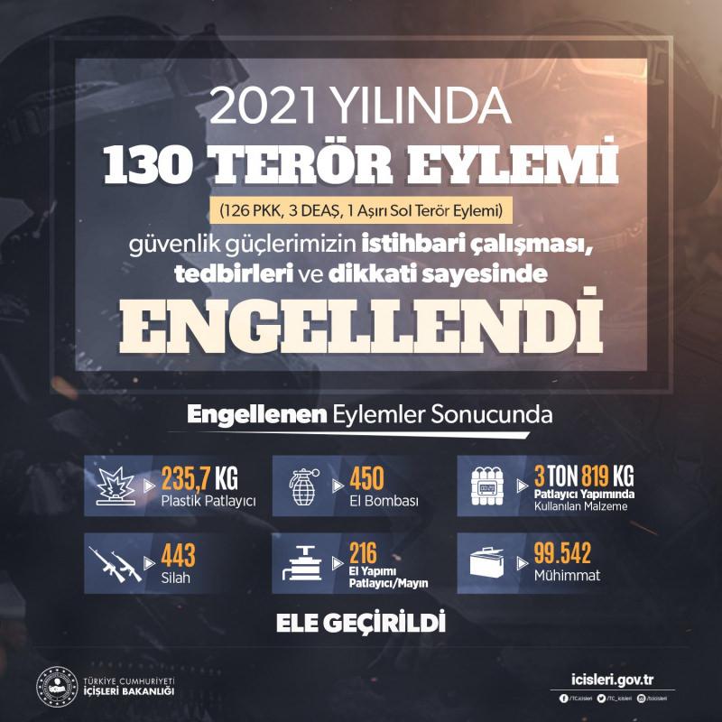 Yapılan açıklamada, 126 PKK, 3 DEAŞ, bir aşırı sol terör eyleminin engellediği açıklandı.