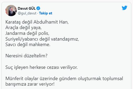 Suç işleyen herkese ceza verildiğini vurgulayan Gül, bu tür olaylar üzerinden gündem oluşturmanın toplumsal barışa zarar verdiğini de ifade etti.