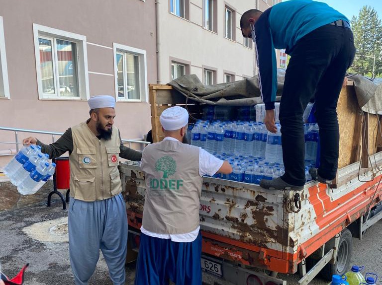 İDDEF’ten yardım çalışmalarıyla ilgili yapılan açıklamada, “Batı Karadeniz’deki sel felaketinin ardından gün birlik olma günü anlayışla acil yardım kampanyamızı faaliyete alarak devlet ve millet olarak yaraları sarmak için çalışmalarımızı gerçekleştiriyoruz. Bu kapsamda hayırseverlerimizin bağışlarıyla hazırlamış olduğumuz ihtiyaç duyulan acil yardım malzemelerini sel felaketinin yaşandığı bölgelere ulaştırdık. Bölgeye intikal eden saha ekiplerimiz hazır gıdadan içme suyuna, bebek mamasından hijyen setine kadar birçok ihtiyaç listesindeki malzemeyi Afet ve Acil Durum Yönetimi Başkanlığı (AFAD), koordinasyonundaki insani yardım noktalarına indirerek tasnif çalışmalarına katıldı” denildi.