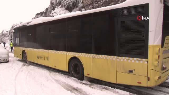 İstanbul'da gece saatlerinde etkisini gösteren kuvvetli kar yağışı hayatı olumsuz etkiledi. Fatih'te bulunan Ulubatlı otobüs durağında yolcu indiren İETT otobüsleri karla kaplı yolda ilerleyemedi.