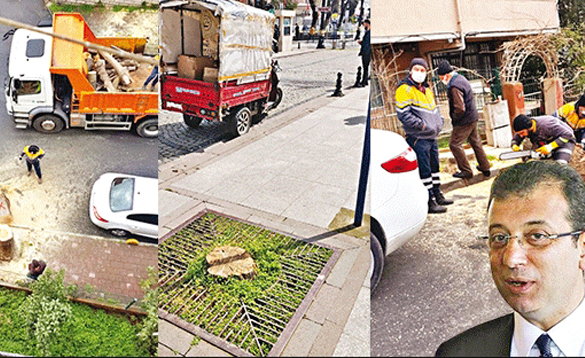 Ekrem şimdi de İstanbulluların nefes almasını sağlayan kentin bitki örtüsüne savaş açtı. Seçimden önce, “İstanbul halkını yeşille buluşturacak çözümlerle geliyoruz” diyen, göreve gelir gelmez AK Partili başkanlarınca yapılan, estetik görünümünün yanı sıra İstanbul’a nefes aldıran ‘Dikey Bahçeler’i kaldırıp, istinat duvarlarını LGBTİ renklerine boyatan İmamoğlu, şimdi de ağaçları katlediyor. CHP’li İmamoğlu’na bağlı İBB ekipleri, gece yarısı operasyonuyla Sultanahmet Camii çevresinde ve Fatih Topkapı Mahallesi Şehit Alpay Başaran Sokak’ta sözde ‘bakım ve budama çalışması’ adı altında devasa ağaçları kökünden kesti. İBB iştiraklerinden Ağaç ve Peyzaj A.Ş.’ye bağlı ekiplerin, söz konusu ağaçları banka ATM’lerine ve yandaşlara peşkeş çekilecek olan büfelere yer açabilmek için kestiği ifade edildi. Birkaç ağaç için ülkeyi yangın yerine çeviren Gezici kafanın, insanların gölgelendiği ağaçların kökünden kesilmesi karşısında sessizliğini korumasıyla ikiyüzlülüklerini bir kez daha gözler önüne serdi.