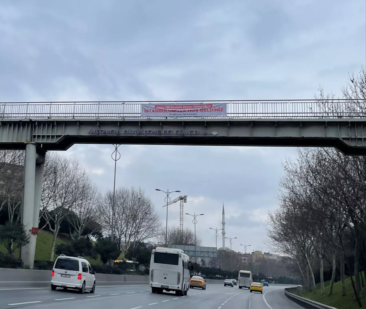 İmamoğlu'nun bu tavrını tiye alan vatandaşlar İstanbul'un birçok noktasına 'hoş geldin' pankartları astı.