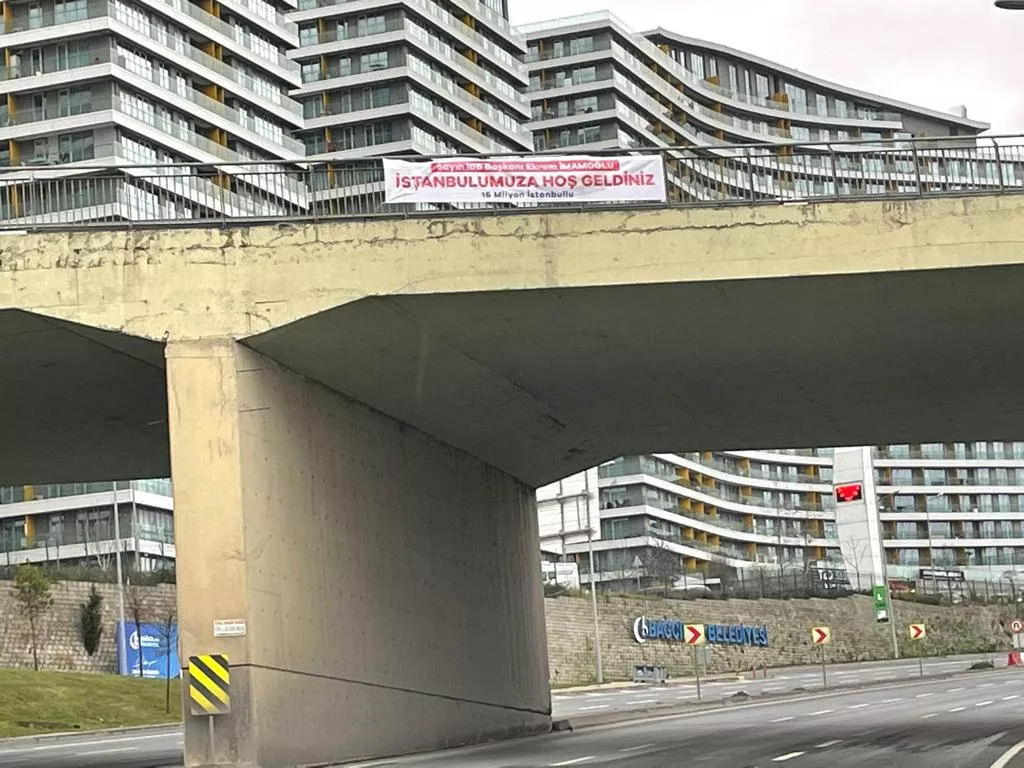 İstanbul'un dört bir tarafına asılmış pankartlarda "Sayın İBB Başkanı Ekrem İmamoğlu İstanbulumuza hoş geldiniz, 16 milyon İstanbullu" denildi.