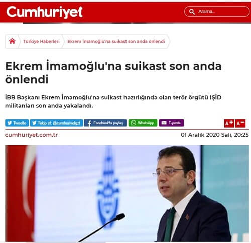 EGM tarafından yapılan basın açıklaması, Cumhuriyet Gazetesi ve Oda TV'ye yetmedi. Cumhuriyet Gazetesi, "Ekrem İmamoğlu'na suikast son anda önlendi" şeklinde bir başlık atarak, IŞİD militanlarının İBB Başkanı Ekrem İmamoğlu'na suikast düzenlemeye hazırlık yaptıkları sırada yakalandıklarını iddia etti.