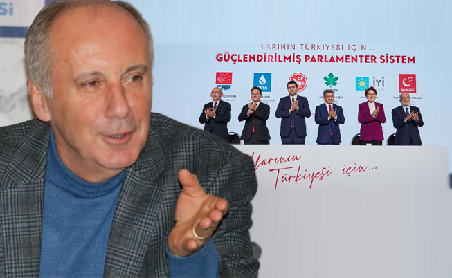 İnce konuşmasında, “6 kişi bir araya gelecek talimat verecekler cumhurbaşkanına, o da ülkeyi yönetecek. Yüzde iki alacak bir parti cumhurbaşkanı seçilebilmek için 50 artı 1 alacak, yüzde 50 artı 1 alan birisi bir karar alacakken dur bir dakika Temel Karamollaoğlu ne düşünüyor ona bir sorayım diyecek. Bu rüyaya kim inanır. Böyle bir saf cumhurbaşkanı olur mu, bu kadar saf adamdan cumhurbaşkanı olur mu? Dolayısıyla ne partili cumhurbaşkanı, ne de parti başkanlarından emir alan bir cumhurbaşkanı. Bu milletin evladı olacak. Yeterli birikimi olan, sağlığı yerinde olan, aklı başında olan, matematik bilen, toplumu kucaklayacak Edirne’den Ardahan’a gönül köprüleri kuran adaletli birini bulacağız. Bize masal anlatıyorlar” dedi.