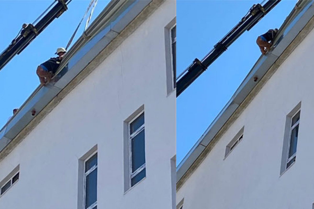 Çatı ile bina arasında sıkışan işçi bir süre kurtarılmayı bekledi. İşçisinin sesleri üzerine çevredeki vatandaşlar tarafından polis, sağlık ve itfaiye ekiplerine bilgi verildi. İhbar üzerine olay yerine gelen itfaiye ekipleri, çatıda uzun süre sıkışan işçi kurtarmak için çalışma yaptı. İtfaiyenin çalışması sonucu talihsiz işçi beşinci kattan aşağı düşmek üzereyken kurtarıldı.