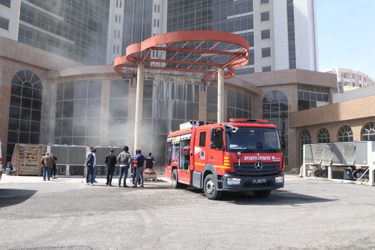 Şanlıurfa'nın Akabe Mahallesi'nde inşası süren bir otelde bilinmeyen nedenle yangın çıktı.