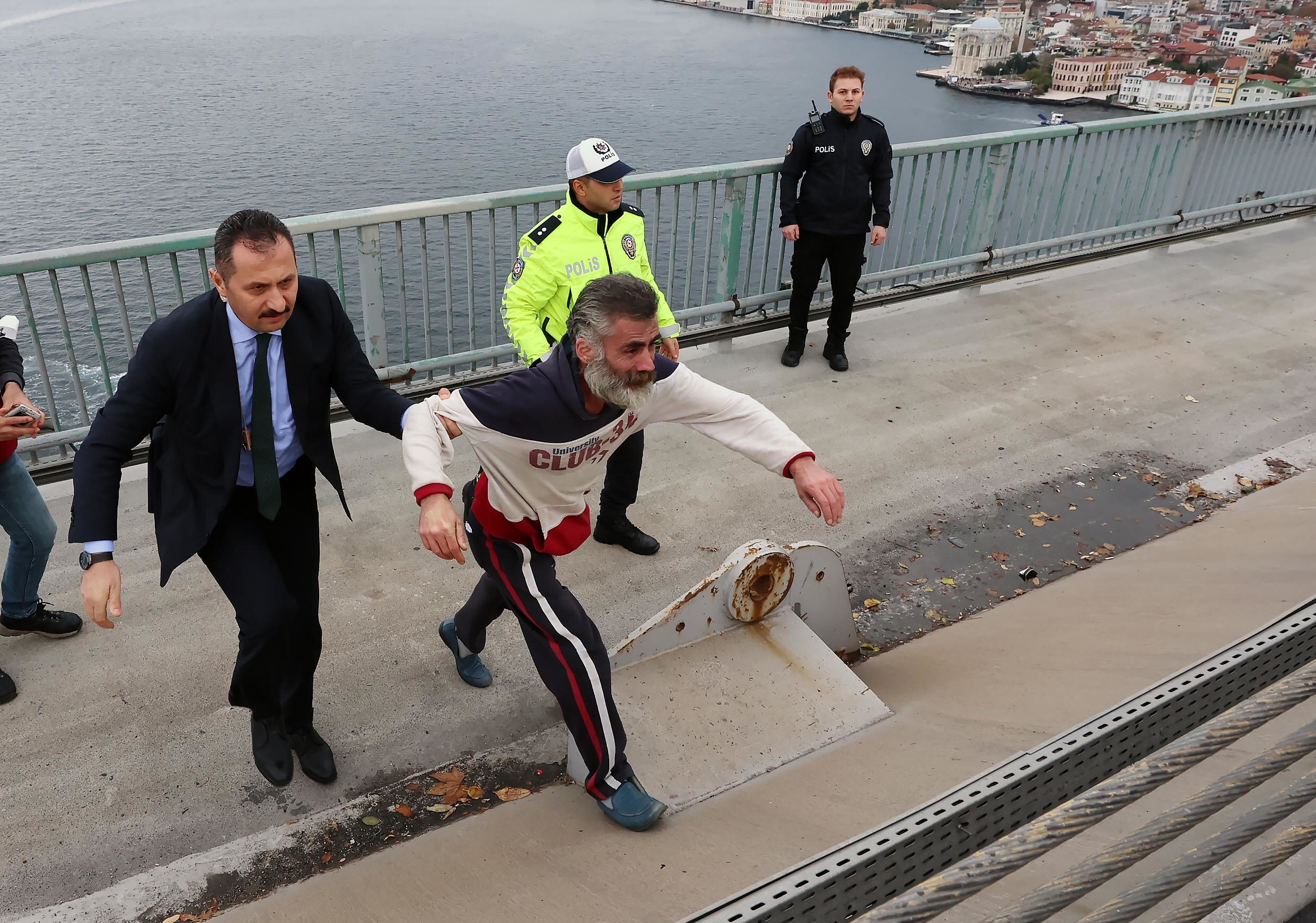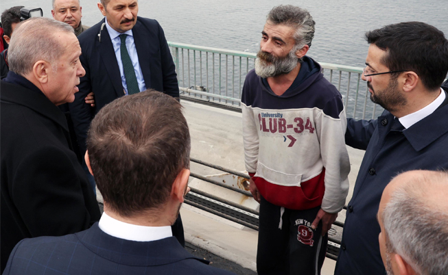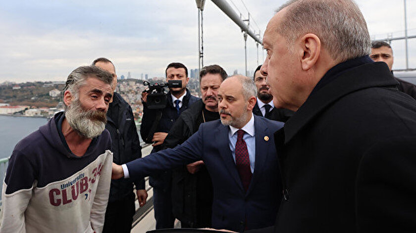 Cumhurbaşkanı Erdoğan'ın konvoyu 15 Temmuz Şehitler Köprüsü'nde ilerlerken durdu. Erdoğan makam aracından inerek köprüde intihar girişiminde bulunan Murat Duran'ın yanına gitti.