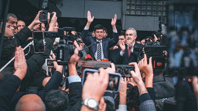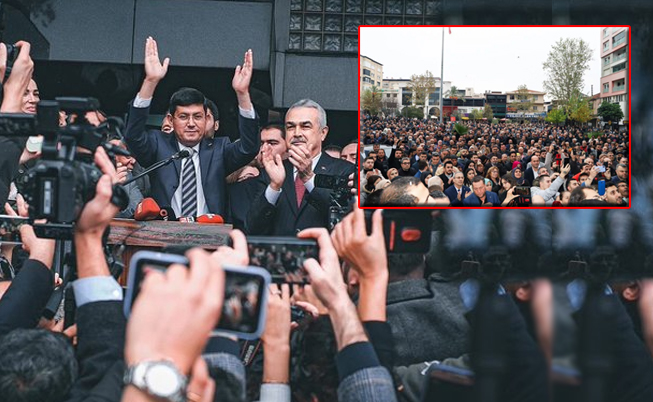 AK Parti Nazilli İlçe Başkanı Mustafa Abak tarafından Başkan Kürşat Engin Özcan’a çiçek verildi. Burada kısa bir teşekkür konuşması yapan Başkan Özcan, kendisini kucaklayan AK Partililer ve MHP’lilerle birlikte Nazilli Belediyesine hareket etti. Mehterle karşılanan Başkan Özcan ve beraberindekiler, önce kendisini karşılayan belediye meydanındaki binlerce kişiye hitap etti.