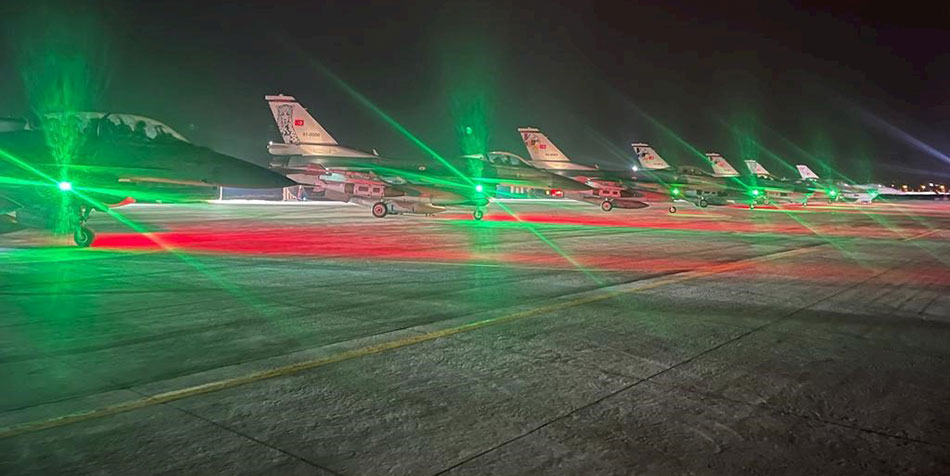 "PKK/YPG/KCK ve diğer terörist unsurları etkisiz hâle getirerek; Irak ve Suriye kuzeyinden halkımıza ve güvenlik güçlerimize yönelik terör saldırılarını bertaraf etmek ve hudut güvenliğimizi sağlamak maksadıyla; Birleşmiş Milletler Anlaşması’nın 51’inci maddesinden doğan meşru müdafaa haklarımız doğrultusunda, Irak kuzeyindeki Metina, Gara, Hakurk ve Kandil bölgeleri ile Suriye kuzeyinde bulunan terörist hedeflerine 15 Ocak 2024, saat 22.00’de Hava Harekâtları icra edilmiş, icra edilen Hava Harekâtları ile Bölücü Terör Örgütü (BTÖ) tarafından kullanılan ve içerisinde sorumlu düzeyde teröristlerinde bulunduğu değerlendirilen mağara, sığınak, tünel, mühimmat/malzeme deposu, ikmal malzemeleri ve terör örgütü tarafından gelir elde etmek maksatlı kullanılan tesislerden oluşan 23 hedef imha edilmiştir.
