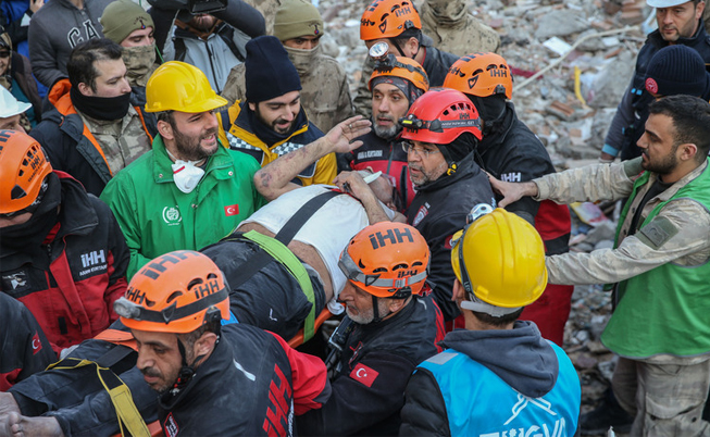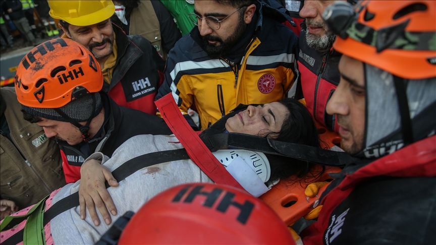 Akdeniz, Güneydoğu ve Doğu Anadolu bölgelerindeki 10 ili etkileyen depremlerde yıkılan Hatay'ın İskenderun ilçesindeki 5 katlı apartmanın enkazından depremden 102 saat sonra 6 kişilik aile kurtarıldı.