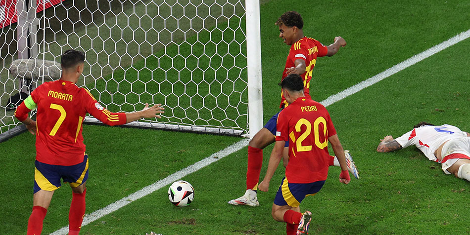 İspanya'nın Nico Williams ile bir topu da direkten döndü.