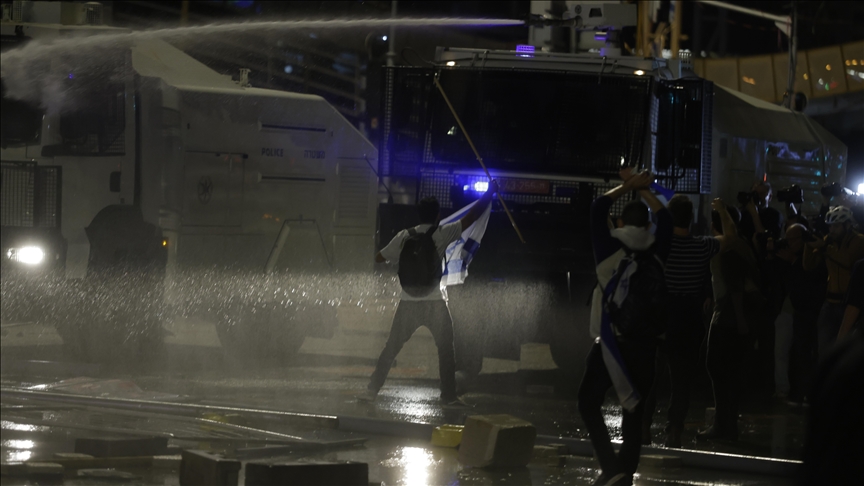 İsrail Kamu Yayın Kuruluşuna (KAN) göre, İsrail polisi, Tel Aviv merkezindeki Ayalon Caddesi'ni demir bariyerlerle kapatmaya çalışan ve ateş yakan göstericilere müdahale etti.