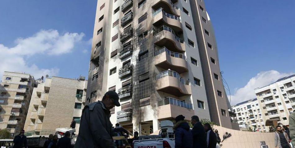 SANA, haber sitesinde yanmış bir apartman binasının görüntülerini paylaştı.