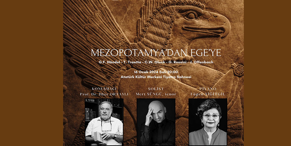 Bu özel konserde, Mezopotamya'dan başlayıp günümüz Türkiye topraklarına kadar uzanan operatik hikayeler ele alınıyor. Büyük besteciler G.F.Händel, T. Traetta, C.W.Gluck, G.Rossini, J. Offenbach'ın eserlerinden seçilen parçalar, tenor Mert Süngü'nün etkileyici sesiyle hayat bulacak. Ayrıca, gecenin zenginliğine Prof. Dr. İlber Ortaylı'nın anlatımı ve piyanist Fügen Yiğitgil'in performansı da katkı sağlayacak.