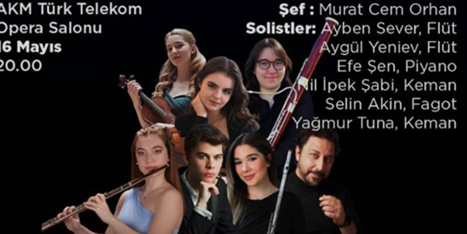 Şef Murat Cem Orhan yönetiminde gerçekleşecek “Atatürk'ü Anma, Gençlik ve Spor Bayramı Konseri”nde gecenin solistleri; flütte Ayben Sever ve Aygül Yeniev, kemanda Nil İpek Şabi ve Yağmur Tuna, piyanoda Efe Şen ile fagotta Selin Akin olacak.
