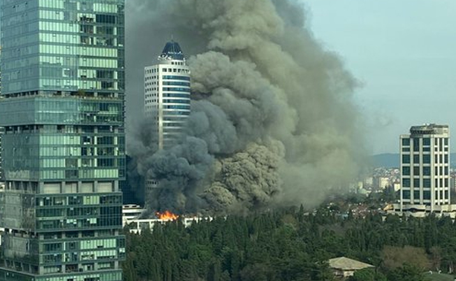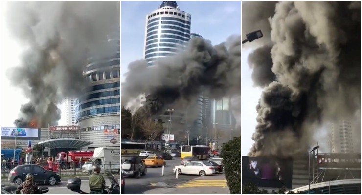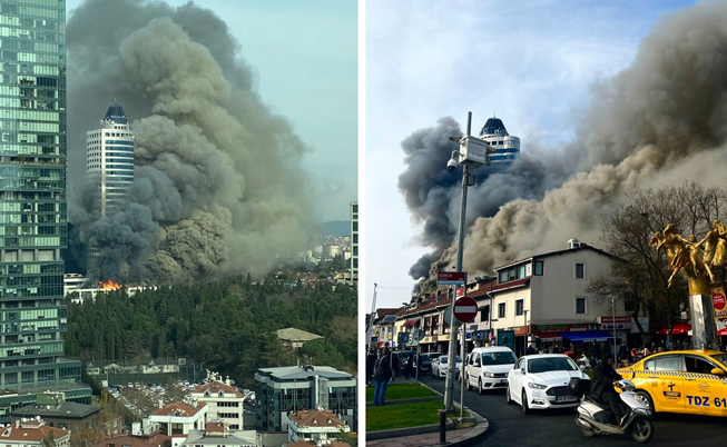 Levent'te bulunan bir alışveriş merkezinin çatısı yanıyor.
