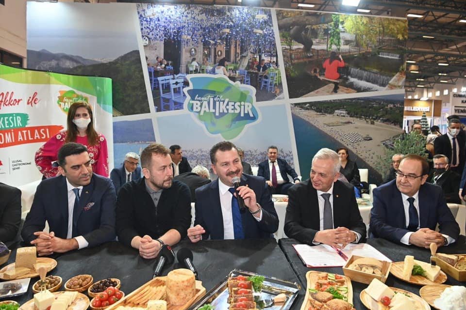 Balıkesir’i Türkiye’nin Cenneti ve zeytin ülkesi olarak adlandıran Balıkesir Büyükşehir Belediye Başkanı Yücel Yılmaz, “Balıkesir çok güçlü bir coğrafyaya sahip. Şehrimizde Balkanlar’dan, Orta Asya’dan göçle gelen insanların köyleri var. Bu da bir gastronomi zenginliği, kültür zenginliği meydana getiriyor. Topraklarımız zaten verimli. Türkiye’de balın, peynirin, zeytinin en lezzetli olduğu yer Balıkesir’dir. Peynirimizi, balımızı, kaymağımızı, kuzu etimizi, zeytinyağımızı bir kahvaltı da bile buluşturabiliyoruz. Ekmek çeşitlerimiz de oldukça fazla. Hatta bir ekmek kitabımız bile var. Son söz olarak ise sürekli vurguladığım ve dillere yapışsın diye söylediğim bir sloganımızı sizlerle paylaşmak istiyorum, ‘Hava atmak için her yere gidebilirsiniz, ama hava almak için Balıkesir’e gelin.’