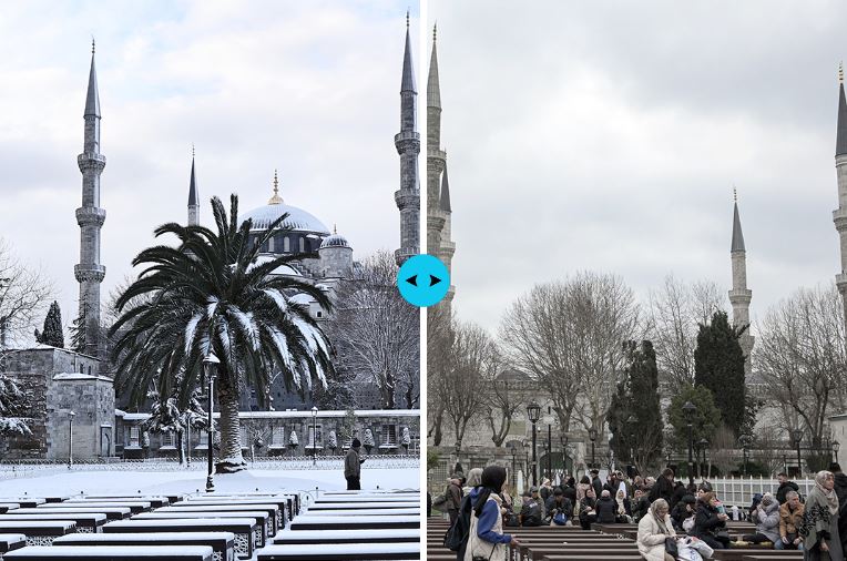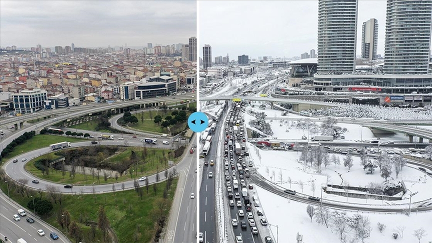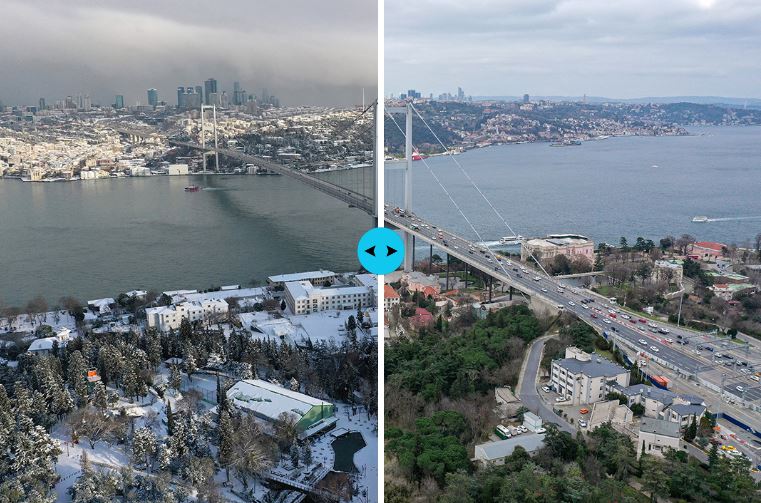 İstanbul’da geçmiş kış sezonlarında çekilen fotoğraflar ile bu yıl aynı noktalardan çekilen karelere bakıldığında kentteki hava değişimi gözler önüne seriliyor.