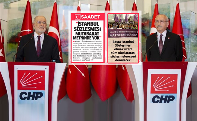 Muhalefetin sözcüsü Cumhuriyet gazetesi İstanbul Sözleşmesi başta olmak üzere tüm uluslararası sözleşmelere geri dönülecek iddiasında bulundu.