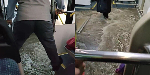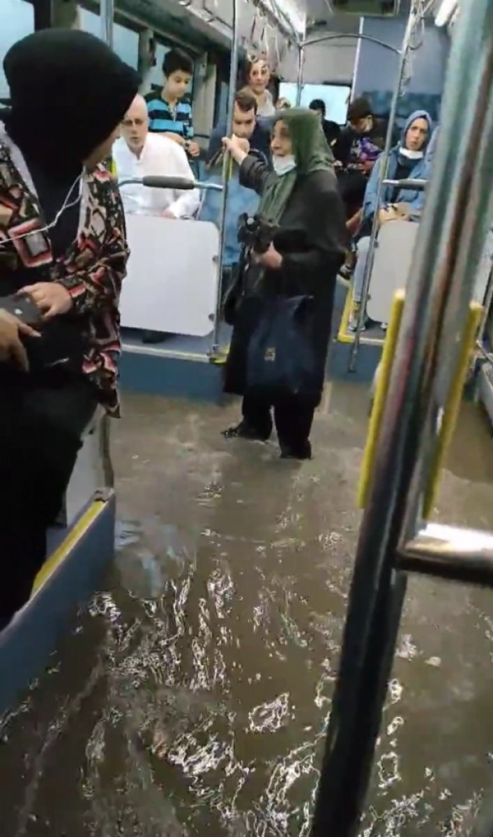 Üsküdar'da hat numarası bilinmeyen bir İETT otobüsünü sağanağın etkisiyle su bastı. Yolcuların zor anlar yaşadığı dakikalarda cep telefonu kayıttaydı.