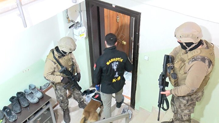 Operasyon kapsamında Bağcılar, Fevzi Çakmak Mahallesi'nde bulunan 4 katlı bir binanın bodrum katındaki daireye giren polis ekipleri içeride arama yaptı. Operasyona özel harekat polislerinin yanı sıra hassas burunlu polis köpeği ve polis helikopteri de havadan destek verdi.