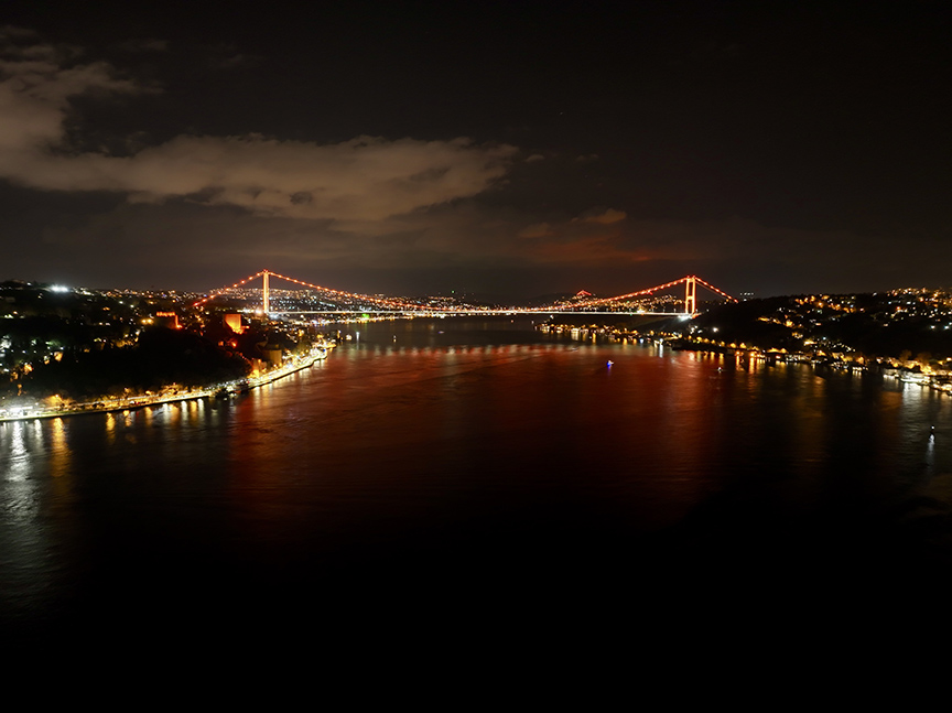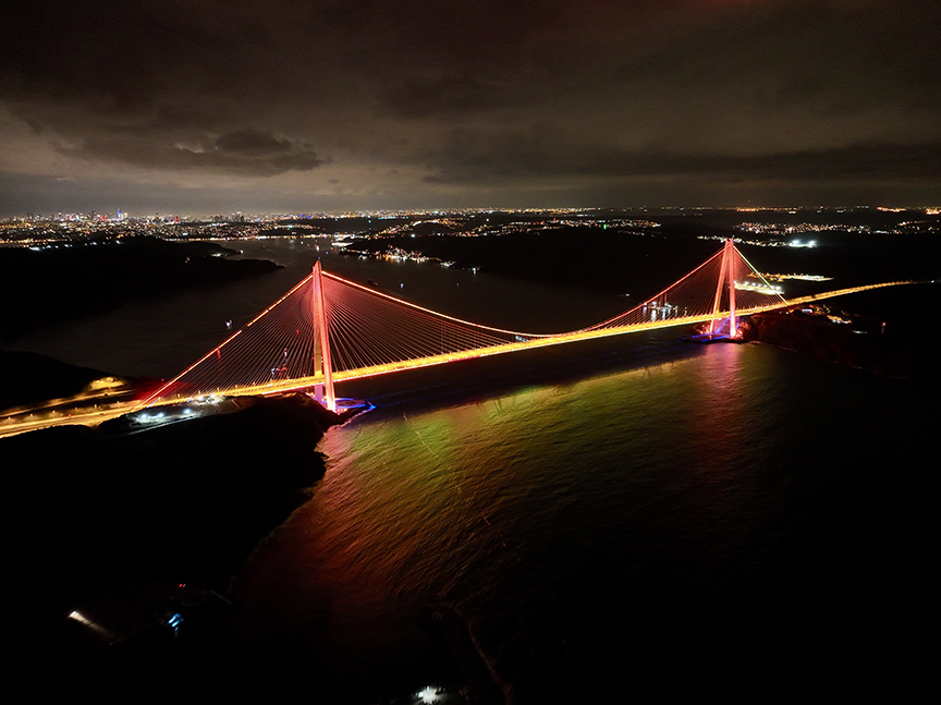 Önemli günlerde renk ve ışık gösterileri yapılan İstanbul'un simge noktalarından Fatih Sultan Mehmet ve Yavuz Sultan Selim köprüleri, "Radyasyon Onkolojisi Farkındalık Ayı" çerçevesinde turuncu renge büründü.