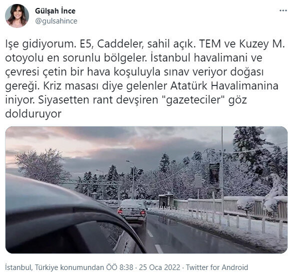 Bu gelişme sonrası yaşanan trafikteki rahatlamayı, Fox Tv muhabiri Gülşah İnce İBB PR'ına dönüştürdü. Sosyal medya hesabından "İşe gidiyorum. E5, Caddeler, sahil açık" diyerek bir paylaşımda bulundu.