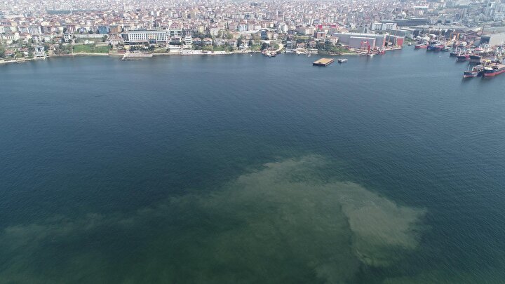Tuzla ve Kadıköy sahillerinde bu sabah drone kamerasına müsilaj benzeri kirlilik yansıdı.