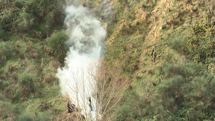 Sığınağın bulunduğu alana yaya olarak giren özel harekat, roket ve lav atışları ile hedefi imha etti.
