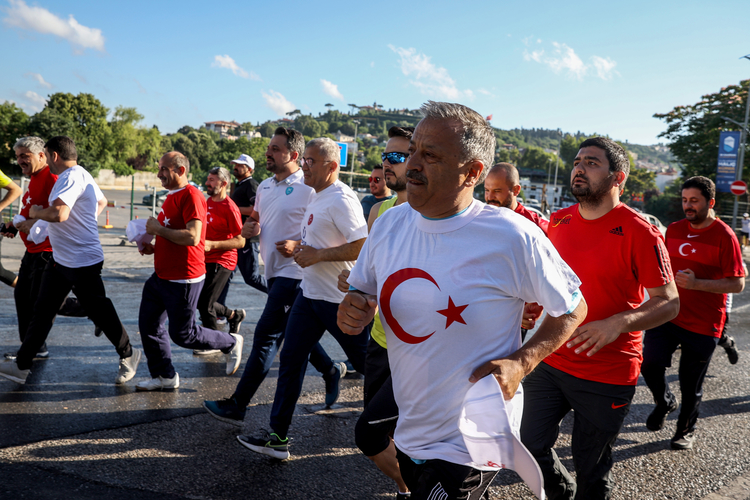 15 Temmuz Derneği’nin öncülüğünde, İstanbul Valiliği, Üsküdar Belediyesi, İstanbul Gençlik ve Spor İl Müdürlüğü, Türkiye Gençlik Vakfı (TÜGVA), ÖNDER ve Öncü Spor Kulübü tarafından bu yıl ikinci kez düzenlenen Vatan Koşusu kapsamında 251 sporcu ve katılımcı, 251 şehidin isminin yazılı olduğu tişörtlerle Çengelköy 15 Temmuz Şehitler Çeşmesi'nden Şehitler Makamı'na geldi.