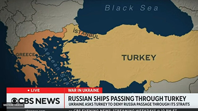 Rusya-Ukrayna Savaşı'na ilişkin bir haberinde İstanbul’u Yunanistan toprağı gibi gösteren CBS News televizyonu yönetimi, yayında yer alan haritada İstanbul’un yanlış temsil edilmesi nedeniyle özür diledi. Kanal yönetiminin özür yazısında şu ifadeler yer aldı: