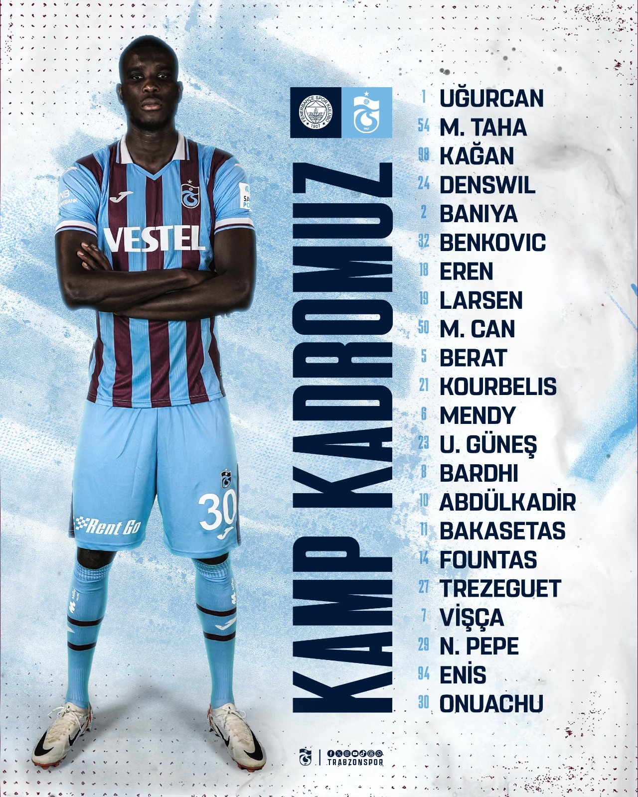 Kulübün sosyal medya hesabından paylaşılan kadroda sakatlıkları bulunan Anastasios Bakasetas ve Trezeguet de yer aldı.