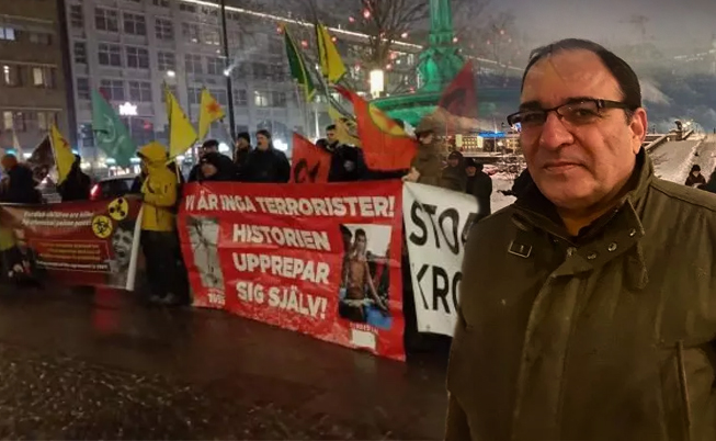 Terör örgütü PKK/YPG destekçisi Türkiye düşmanı gazeteci Kürdo Baksi ve eski bağımsız milletvekili Amineh Kakabaveh'in organize ettiği gösteriye İsveç'te yaşayan, Fetullahçı Terör Örgütü (FETÖ) soruşturmasının firari şüphelisi Bülent Keneş'te destek verdi.