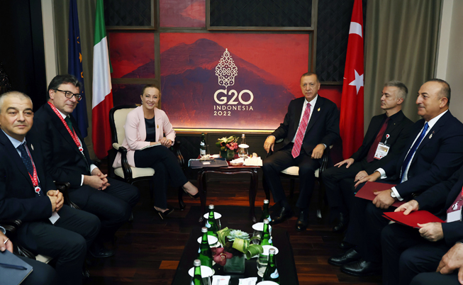 Meloni, Fransa ile geçen hafta Akdeniz'de düzensiz göçmenleri kurtaran sivil toplum gemilerine yönelik yaşadıkları polemiğin ardından Bali'de görüşüp görüşmedikleri sorusuna, "Fransa Cumhurbaşkanı (Emmanuel) Macron ile pek çok kez görüştüm ama Avrupa'nın sorunlarını konuşmak için Bali'ye kadar gelmeye gerek yok." yanıtını verdi