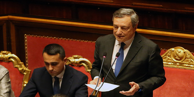 İtalya Başbakanı Mario Draghi, liderlik ettiği koalisyondaki 3 partinin hükümetine dün parlamentoda destek vermemesi sonrasında bu sabah istifasını sunmak üzere Cumhurbaşkanı Sergio Mattarella'ya gitti.