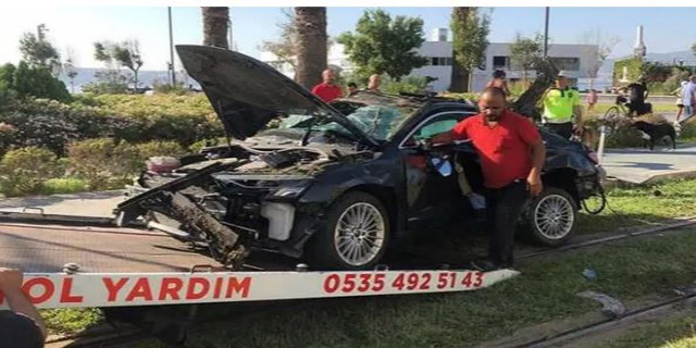İzmir'in Karşıyaka ilçesinde gerçekleşen kaza, saat 07.30 sıralarında Yalı Caddesi'nde meydana geldi. Emre Macit'in (30) kullandığı 34 FGS 521 plakalı otomobil, sürücüsünün direksiyon hakimiyetinin kaybetmesi sonucunda kontrolden çıktı. Savrulan otomobil önce bariyerlere vurdu ardından da tramvay yoluna geçip, kenardaki bir ağaca çarparak durdu.