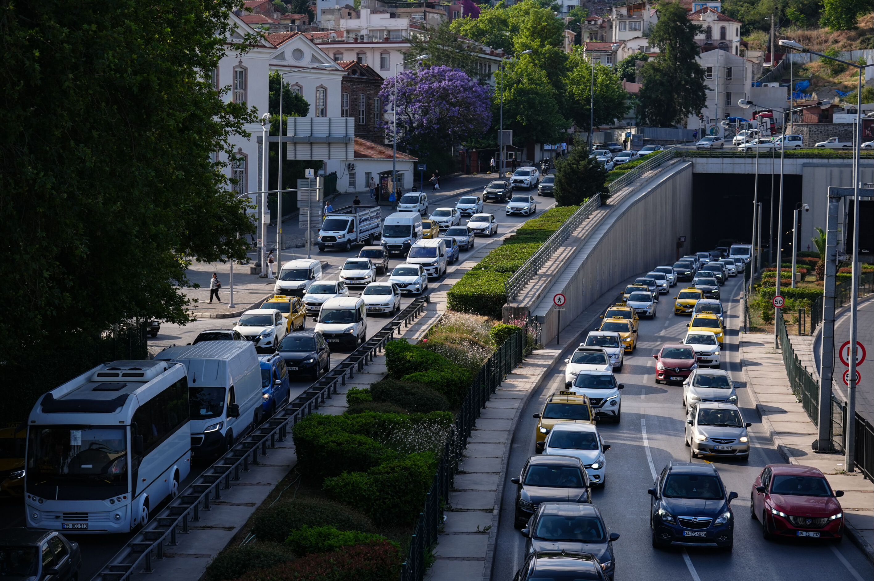 Otobüslerde yaşanan sıkıntı nedeniyle Karşıyaka ilçesindeki Bostanlı Vapur İskelesi'ne araçlarıyla gelmek durumunda kalan vatandaşlar, buradaki otoparkta yoğunluğa neden oldu.